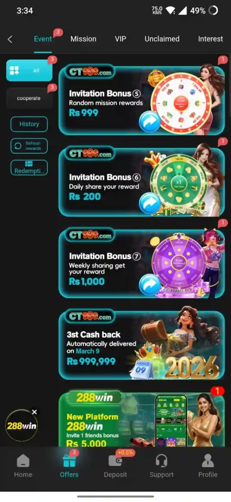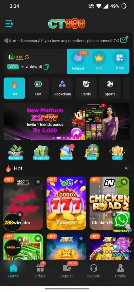 Here is another emerging casino app, CT999, which offers a diverse range of games, including slots, card games, table games, poker, roulette, dragon tiger fight, fishing games, sports betting, live casino games, and many more. With fun and thrill, the app also unlocks earning features through smart gameplay; therefore, an increasing number of users are engaging with it each day.